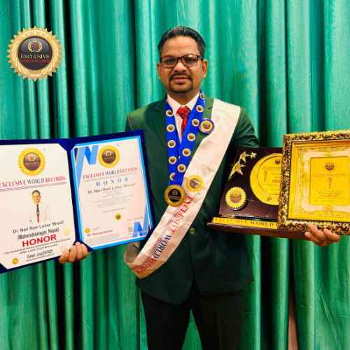 The first physical edition of Exclusive World Records (ISBN No. 978-93-340-4362-4) was launched by Spiritual Guru Dr. Aniruddhacharya Ji Maharaj from Gauri Gopal Vridhashram, Vrindavan, and Maharaja Dr. Sanajaoba Leishemba, Highness Maharaja of Manipur and Member of Parliament (Rajya Sabha). To make it easy for more people to read, we condensed five years of records into a smaller, compact book format. This way, the book remains affordable and still contains all the essential information.